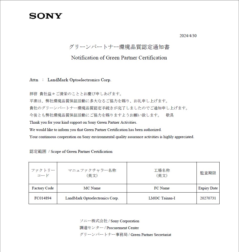 LandMark follows international quality standards, including ISO 9001, ISO14001, ISO45001, IATF16949 and IECQ QC 080000 to establish the quality system infrastructure.